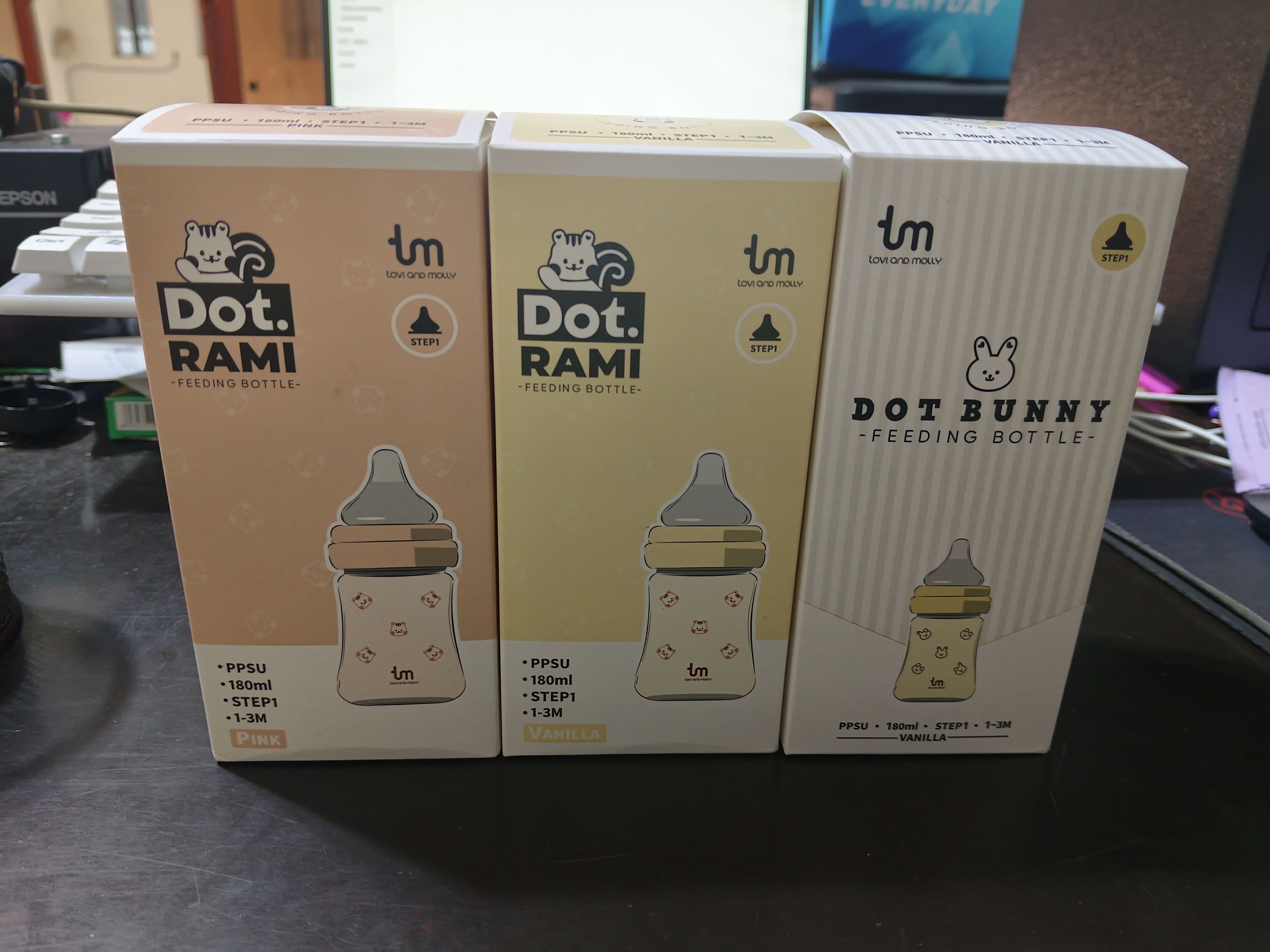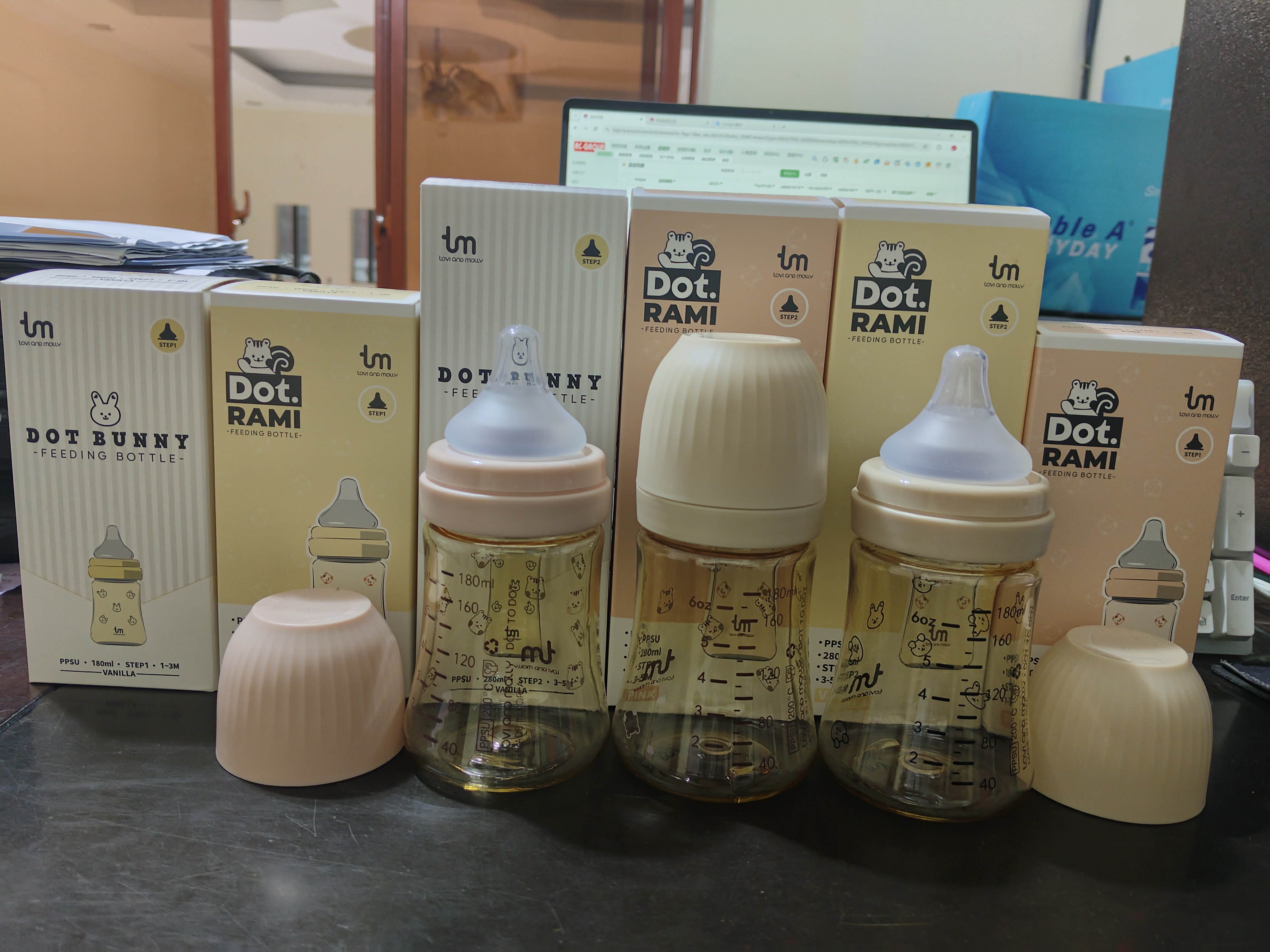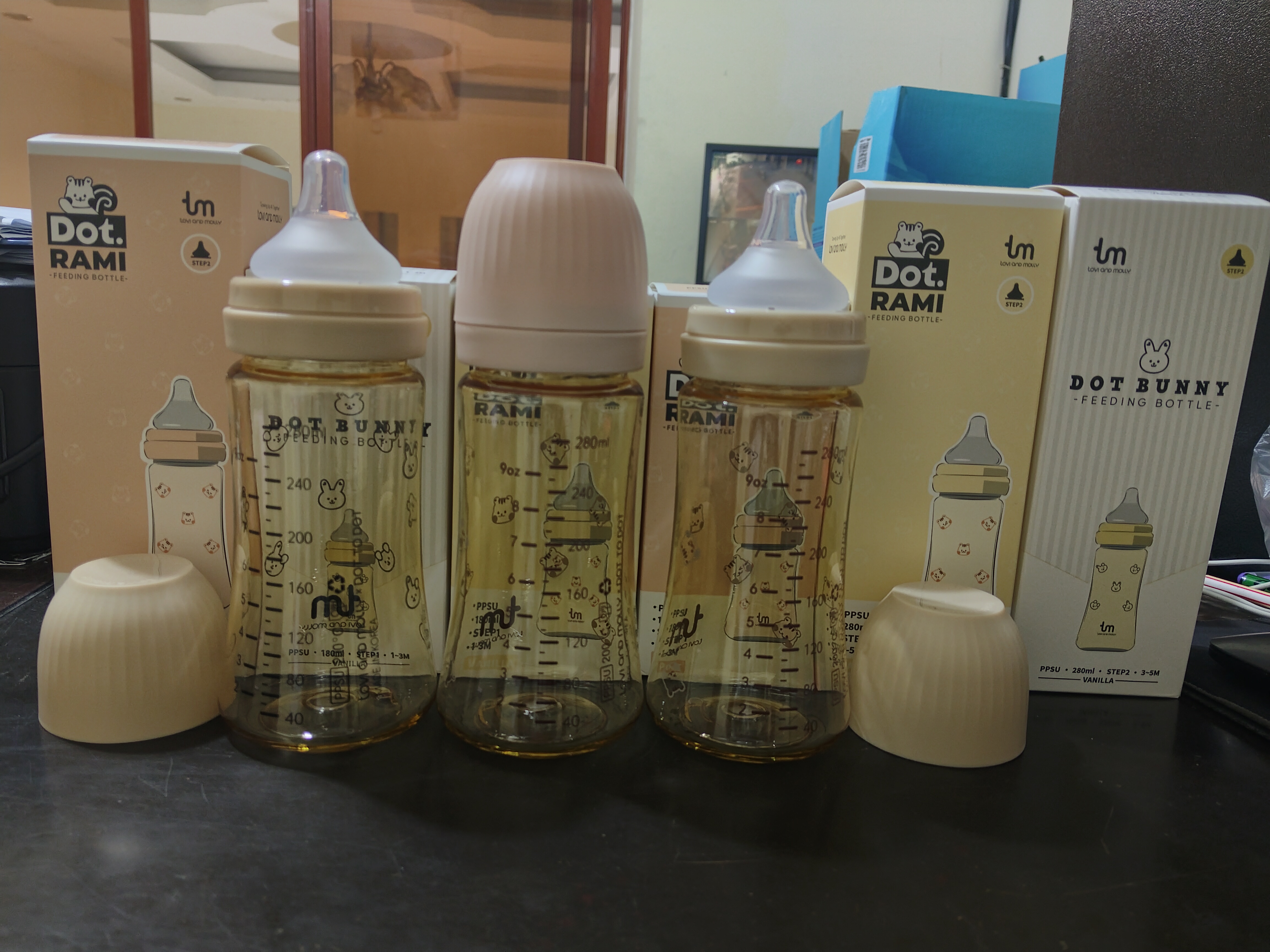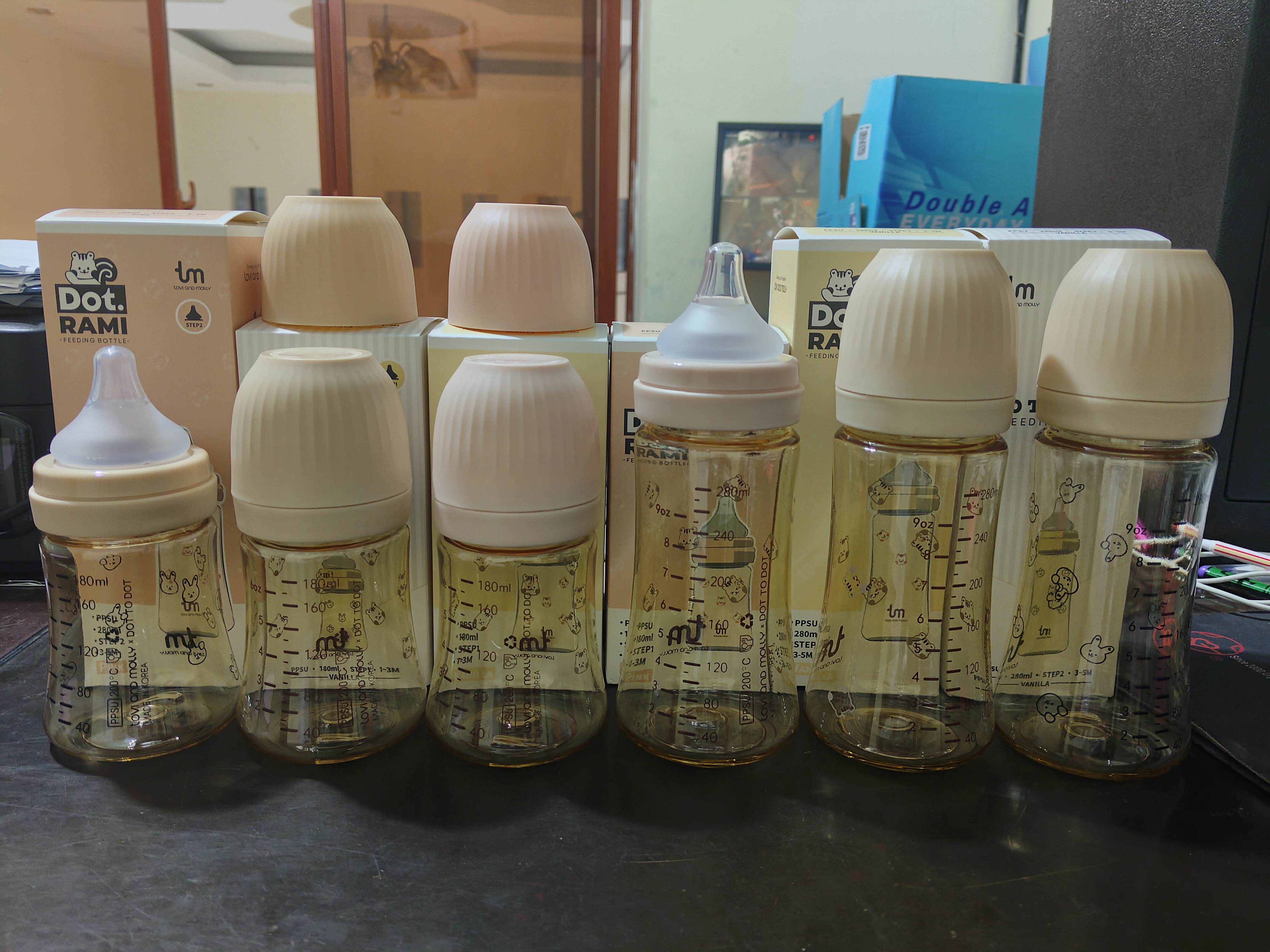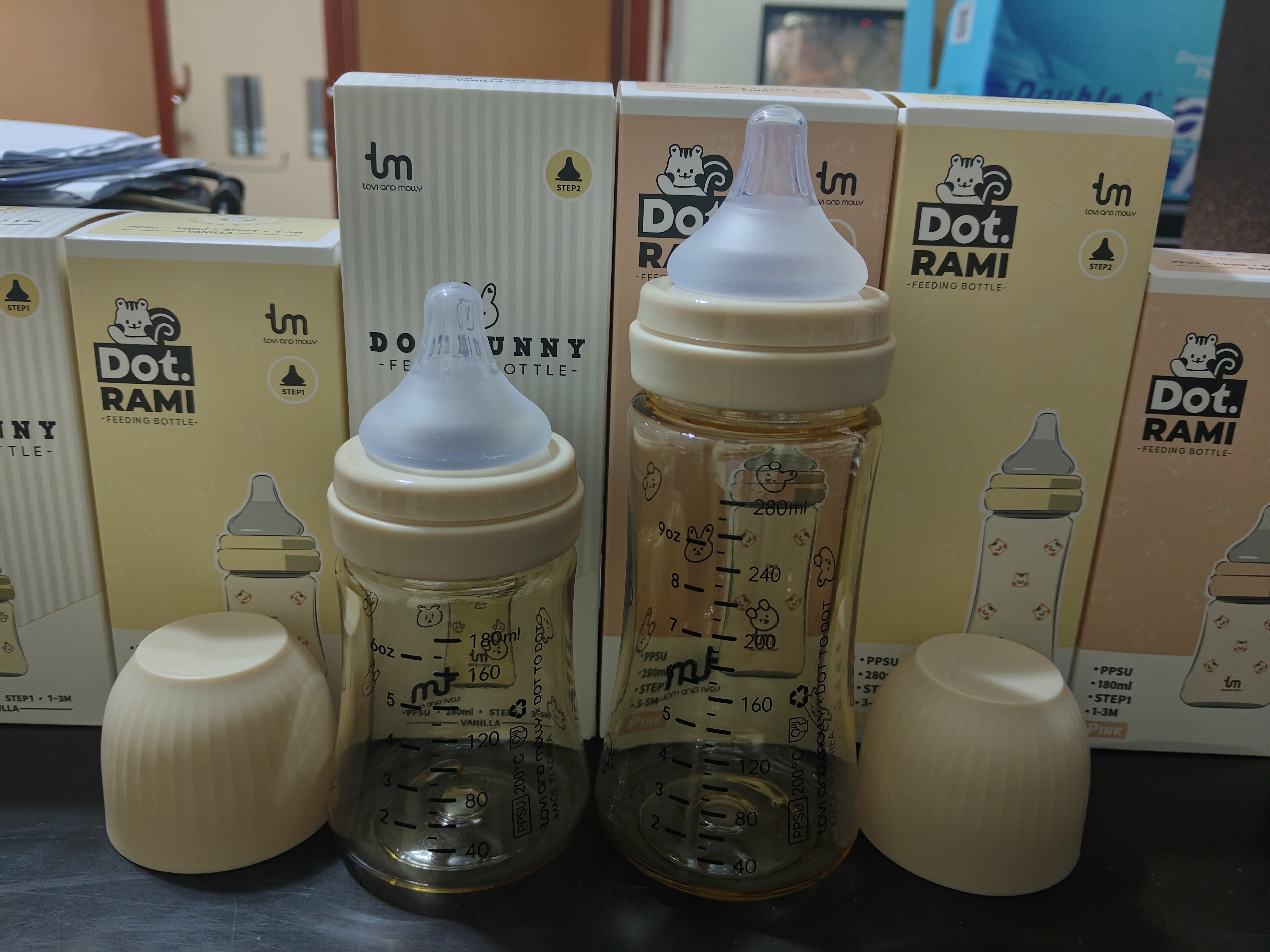 2251Jដបទឹកដោះគោ កធំ ពណ៌ទឹកតែ មាន6លេខ(180ml) :0-3ខែ:6$ 9លេខ(290ml) :3-6ខែ:6.3$ ក្បាលមឹមជ័រសុីលីកូន ទន់ល្អ