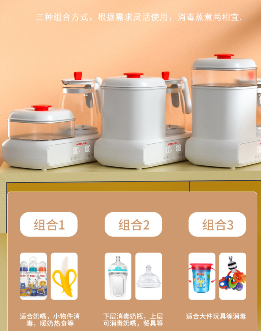 MDXT-19001-1ម៉ាស៊ីនចំហុយសំងួតដបទឹកដោះគោនិងដាំទឹក ដាក់បាន៤-៦ដប កំសៀវ ដាំទឹក រក្សាកំដៅអូតូ មានកំចាត់ជាតិក្ល ដាំពុះ នឹងកំណត់អង្សារក្សាកំដៅតាមតំរូវការ ឆុងទឹកដោះគោកូន/តែ/កាហ្វេបាន 1.2លីត្រ